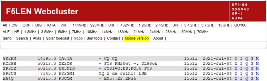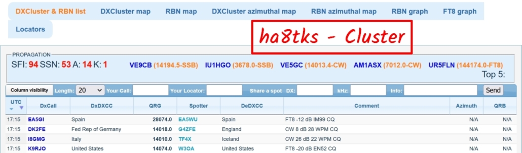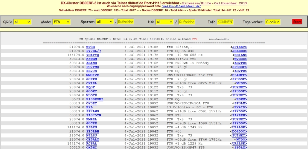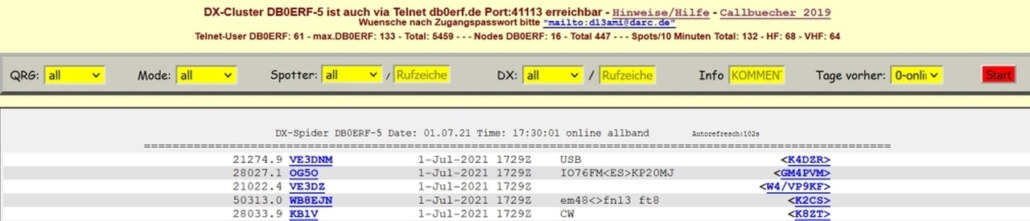 ⇐ aufrufbare DX-CLUSTER ⇓